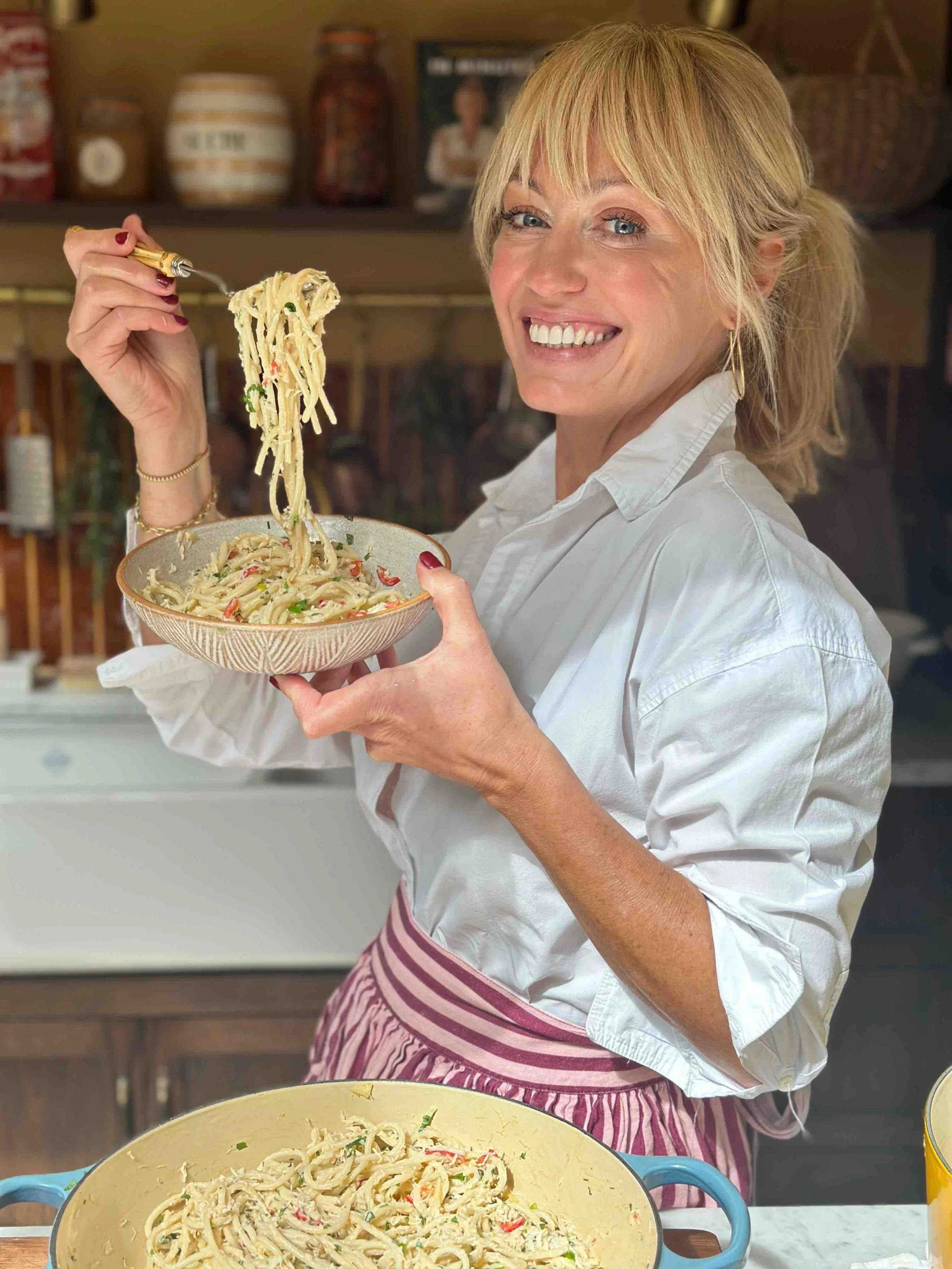 Tip the cooked crab into the pan with the chilli and spring onions, followed by the creme fraiche and stir. Add the juice and zest of 1 lime, stir and allow to cook for 2–3 minutes. Fold in the linguine.