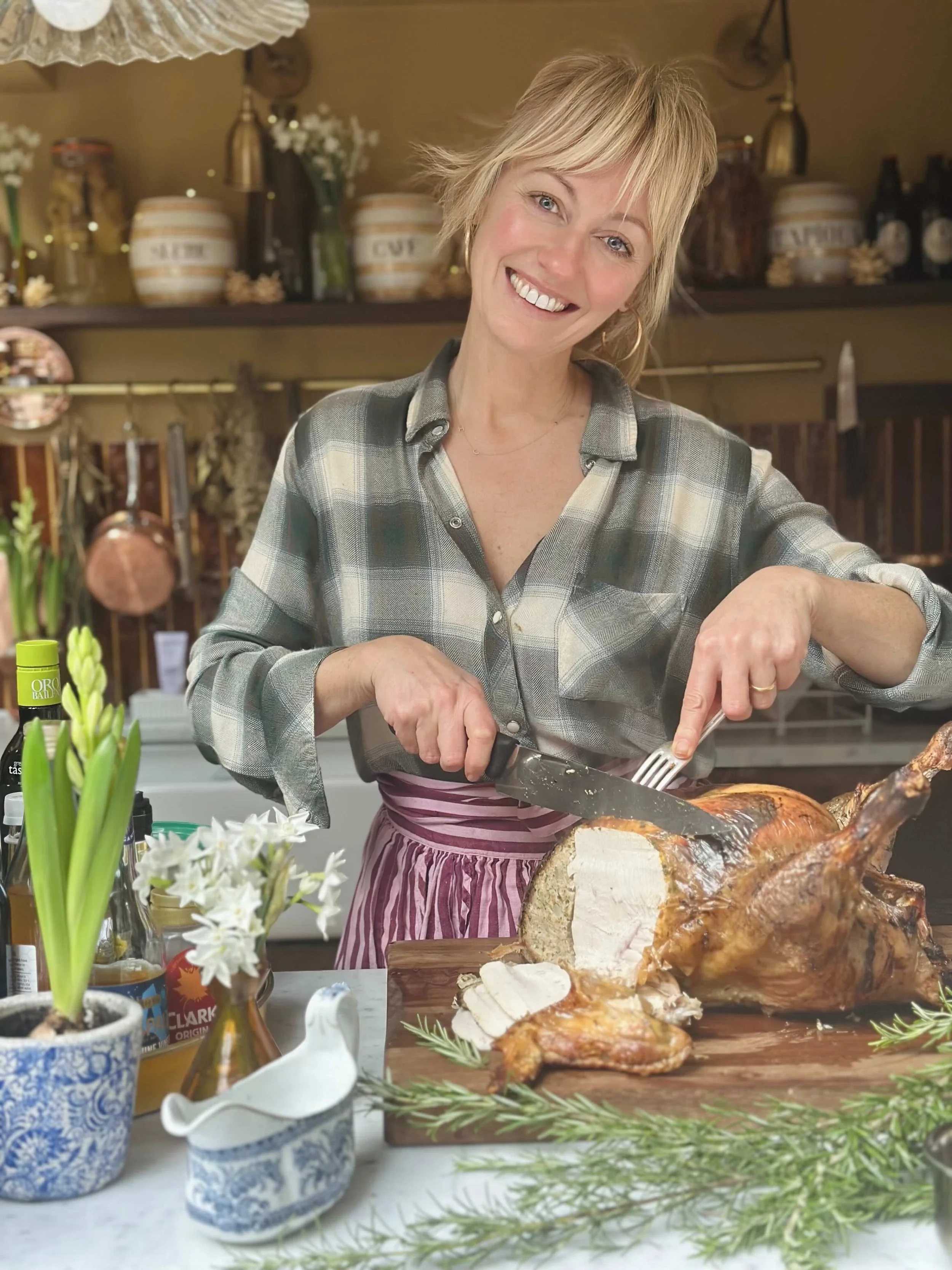 Check to see if the turkey is cooked by inserting a skewer into the thickest part of the thigh; the juices should run clear. When you have taken the turkey out of the oven leave it to rest for 30 minutes with a loose tent of tin foil to keep it warm. This will allow the juices to redistribute themselves, giving tastier meat.
