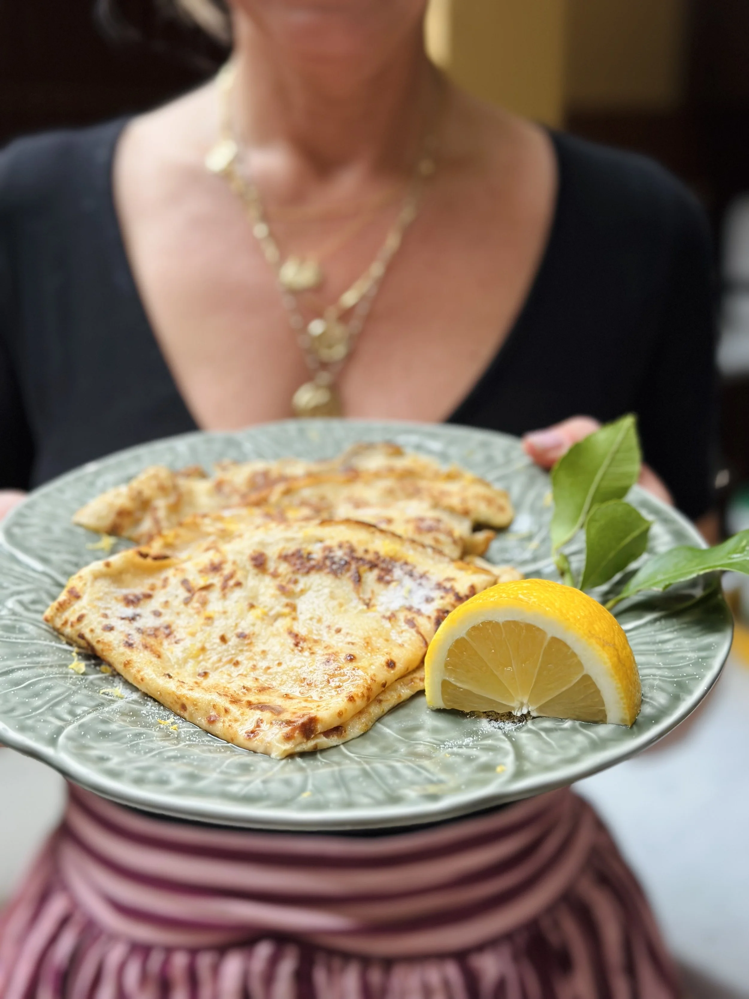 1. Place the flour, eggs, milk, melted butter and a pinch of salt into a large bowl and whisk together to form a smooth batter.